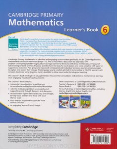 Cambridge Primary Mathematics Stage 6 Learner's Book 6 (Cambridge Primary Math's)This series is endorsed by Cambridge International Examinations and is part of Cambridge Maths. Children will enjoy learning mathematics with this fun and attractive learner's book for stag